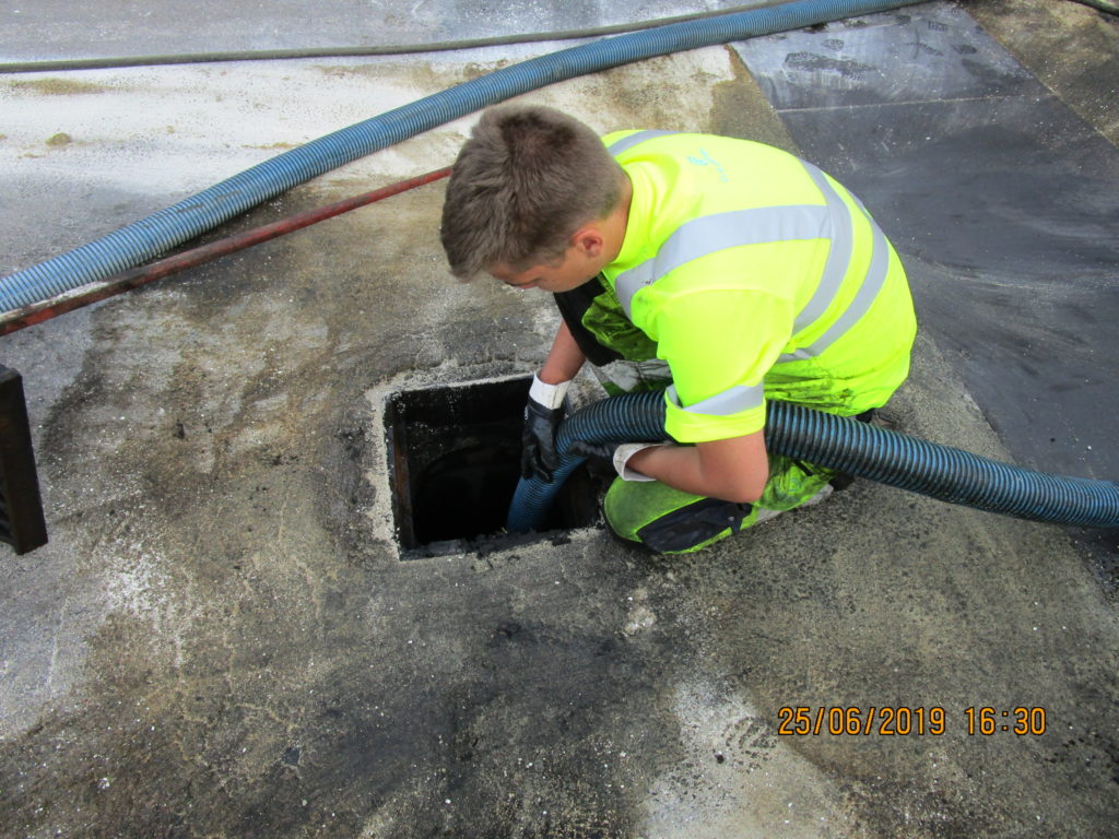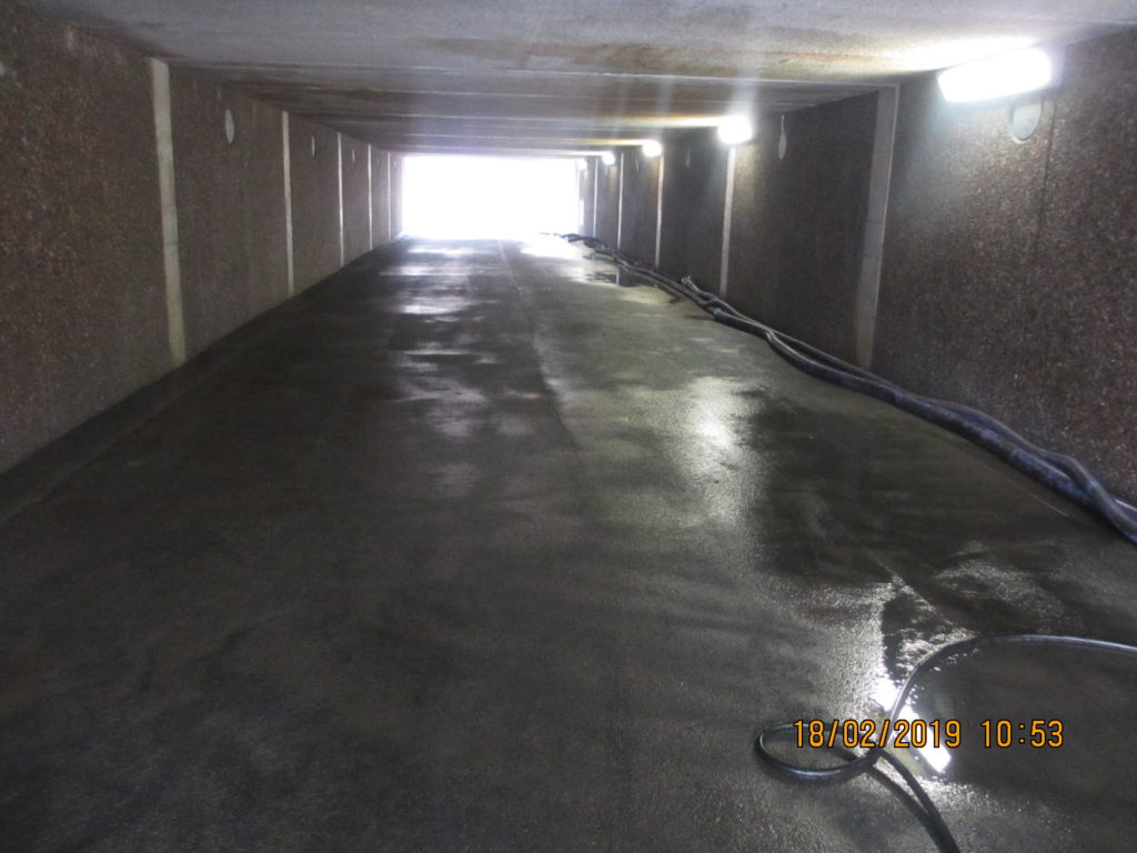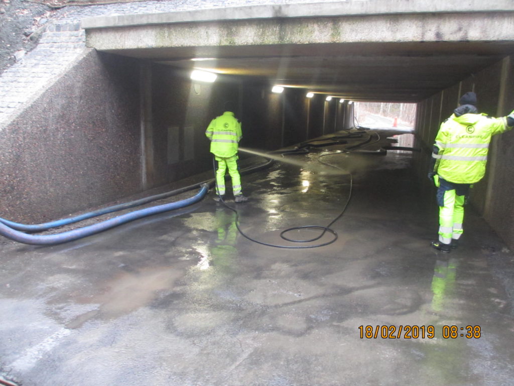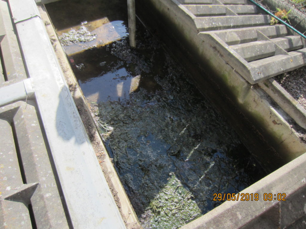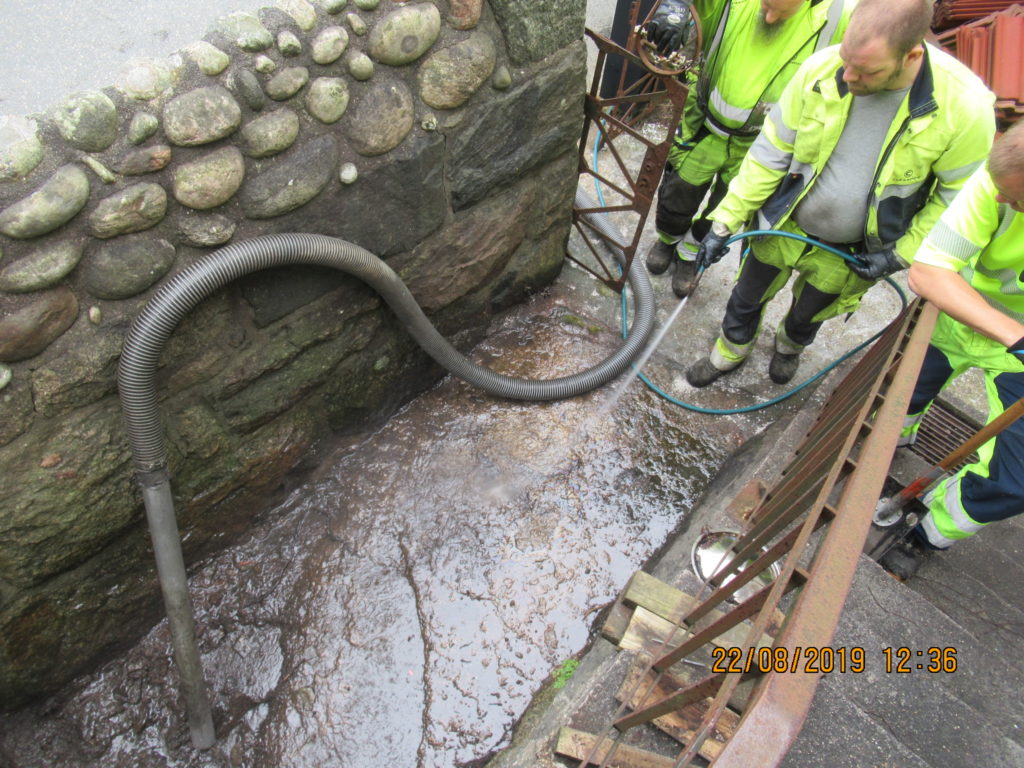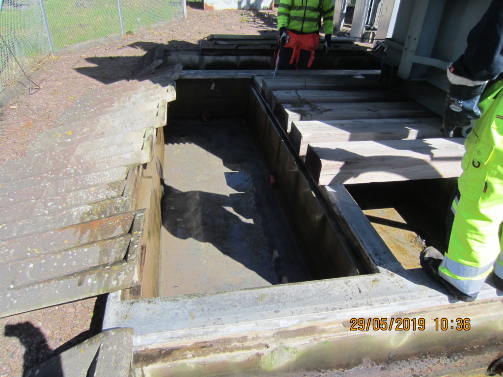 2019-05-29 Rengöring och tvättning av ränna i betongkassun, Kungälv: