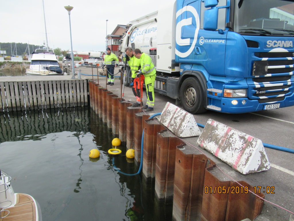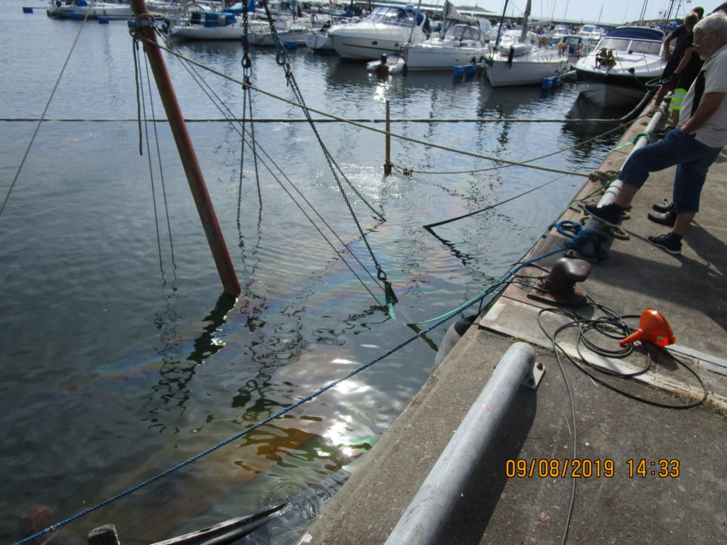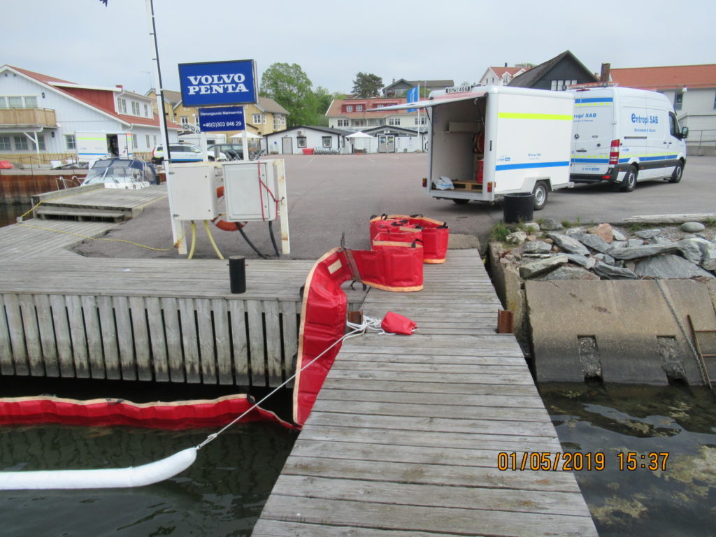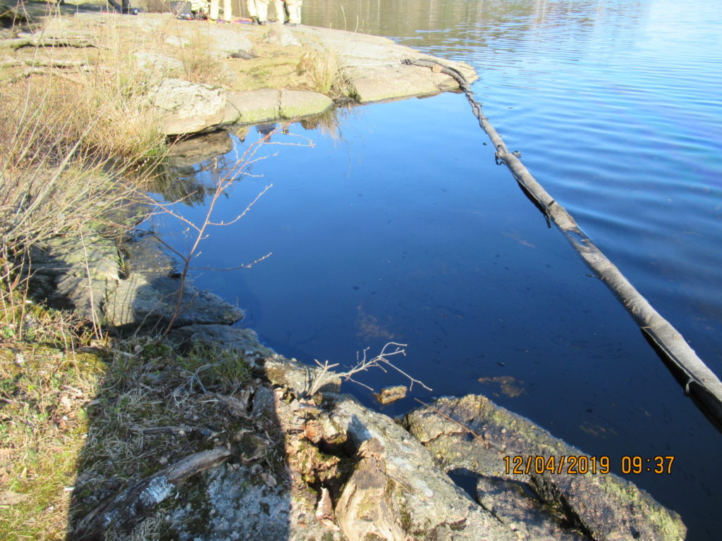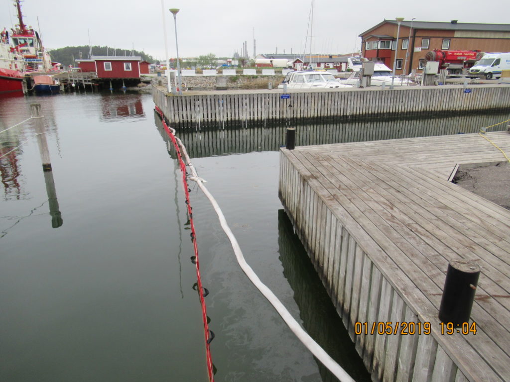 2019-05-01 Upptagning av olja i vatten med skimmer, Stenungsund: