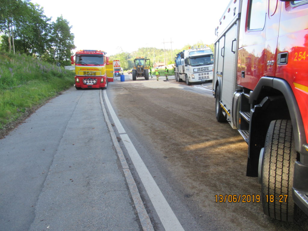 2019-08-12 Hydrauloljeläckage från lastbil, Älvängen: