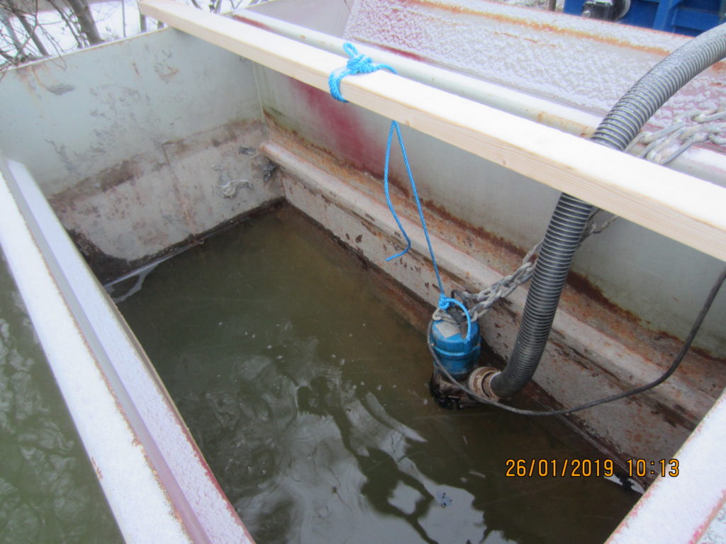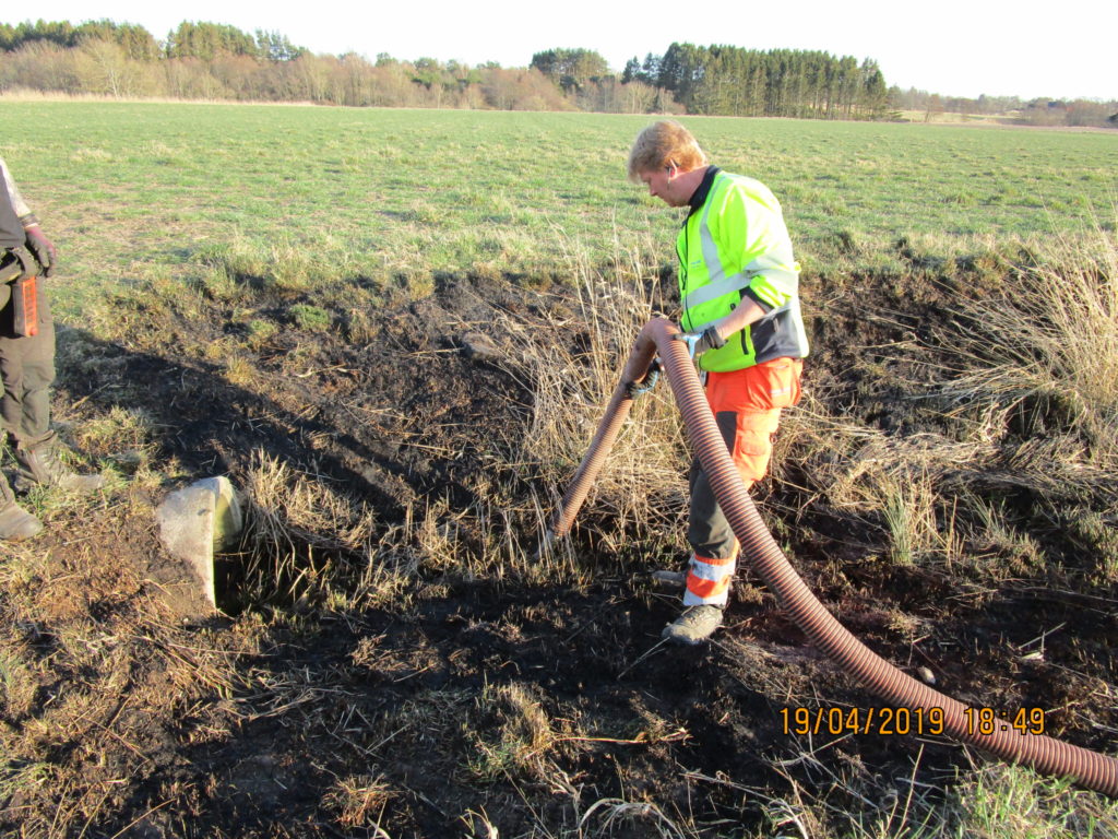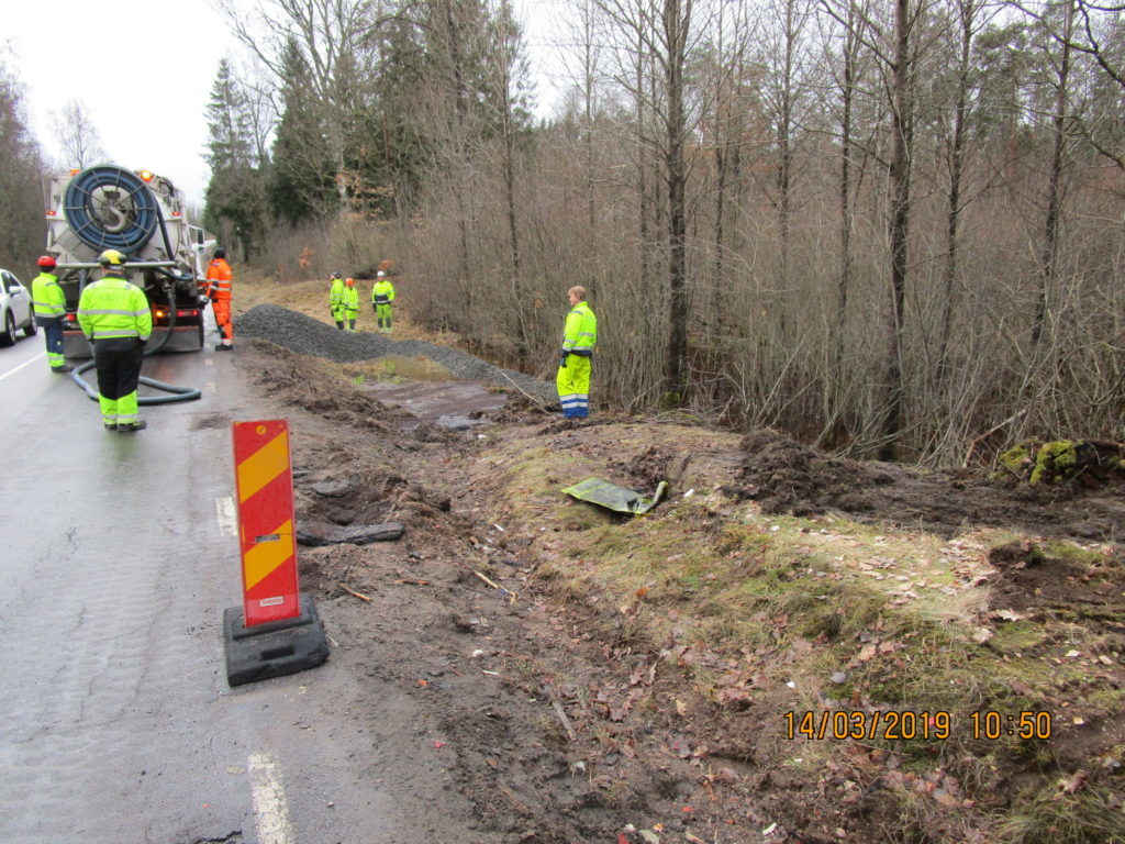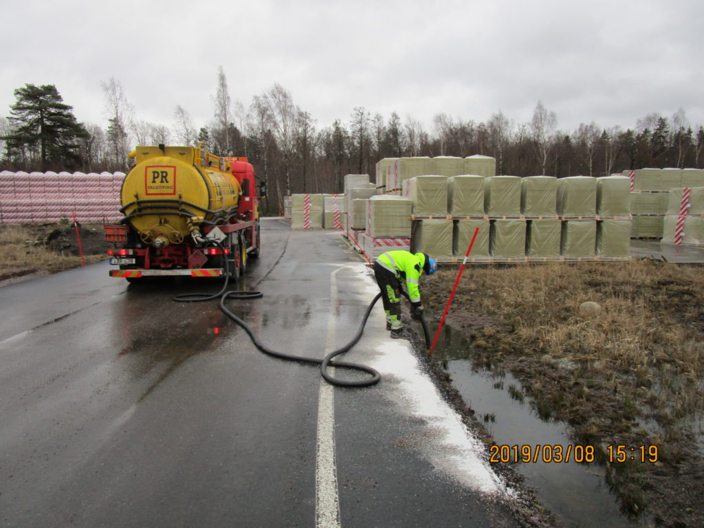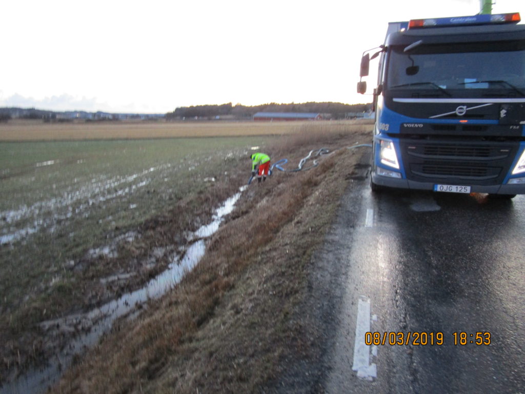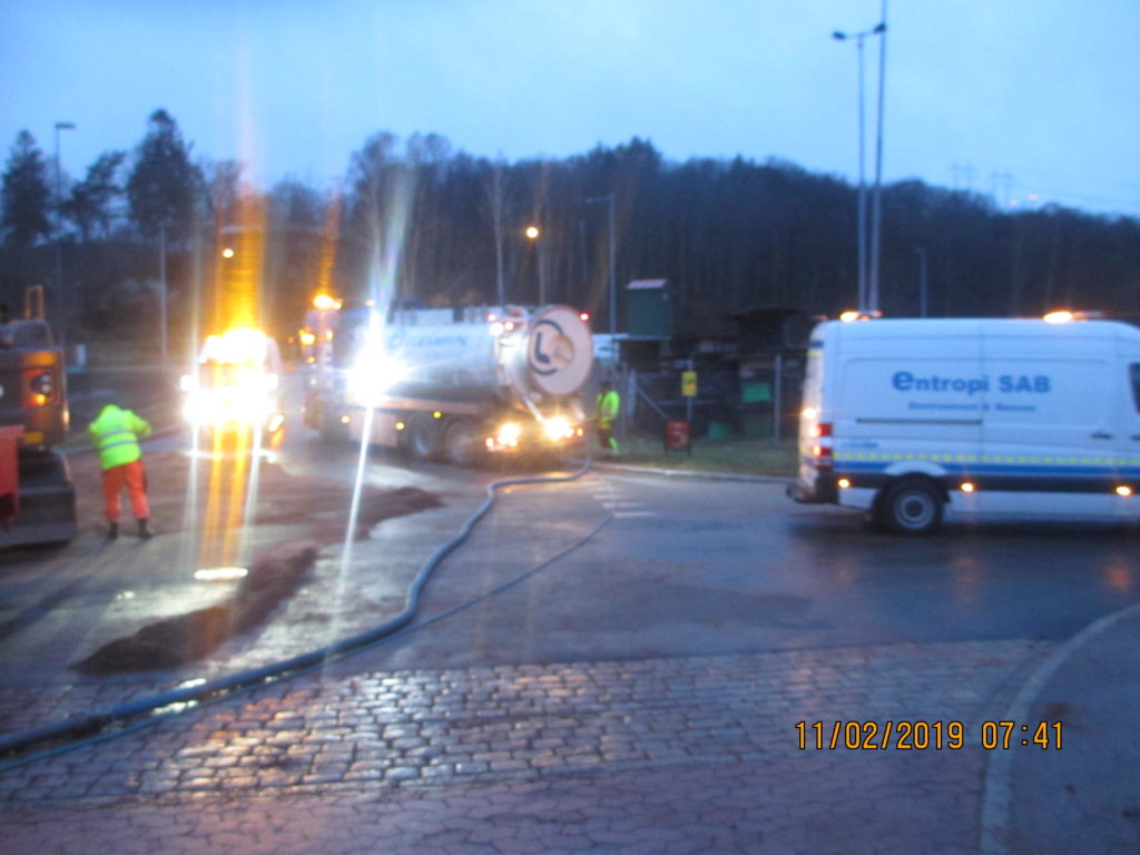 2019-01-31 Länsning av sedimenteringsdamm efter lastbilsolycka, Uddevalla: