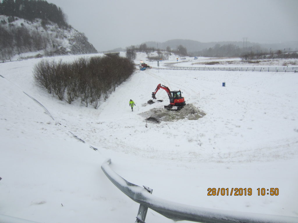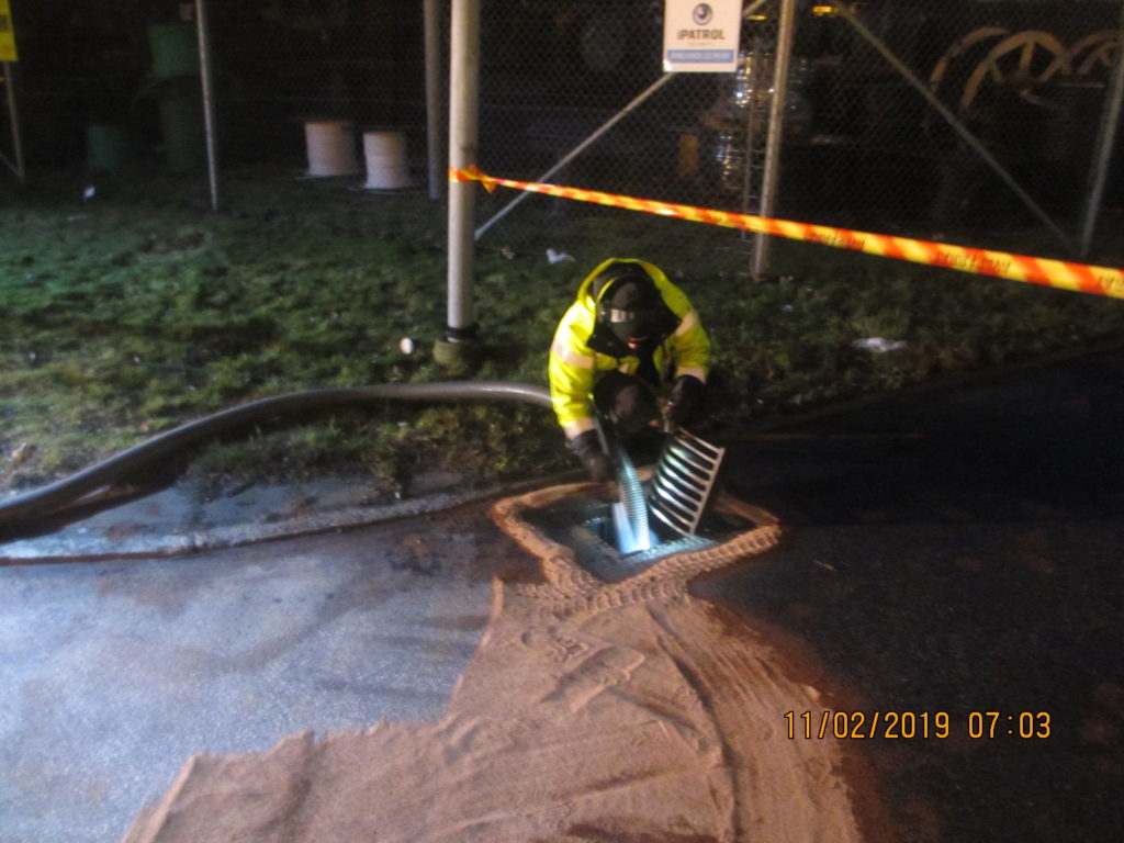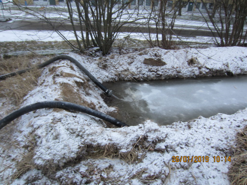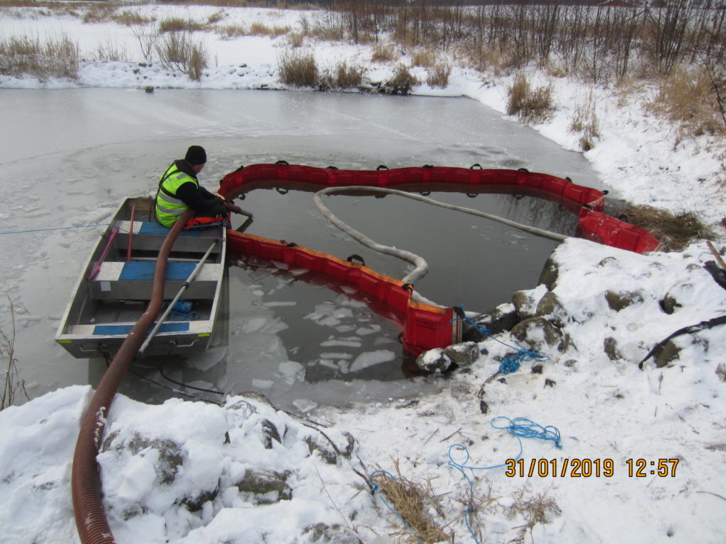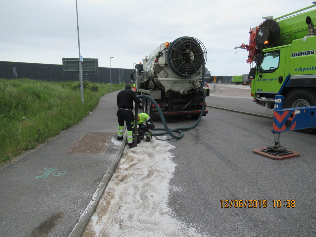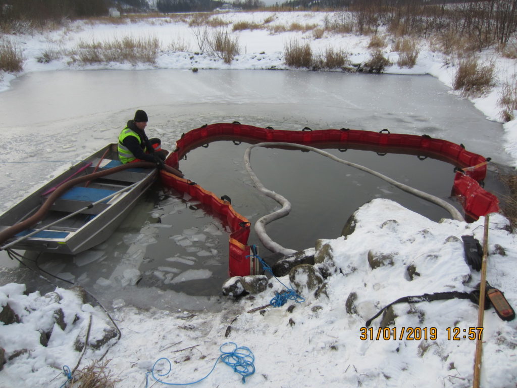 2019-01-31 Länsning av sedimenteringsdamm efter lastbilsolycka, Uddevalla: