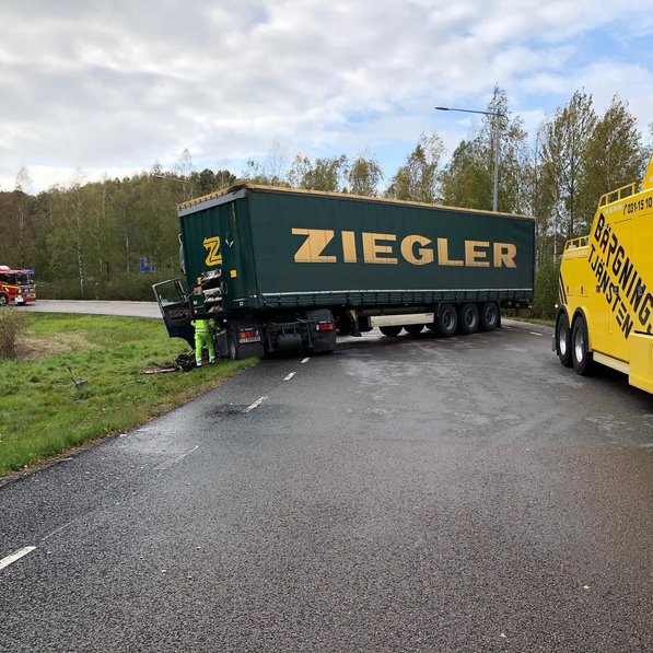 2019-06-12 Lastbilsolycka, Hedekas Munkedal: