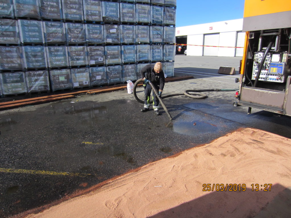 2019-01-02 Dieselläckage från lastbil, Färjenäs Göteborg:
