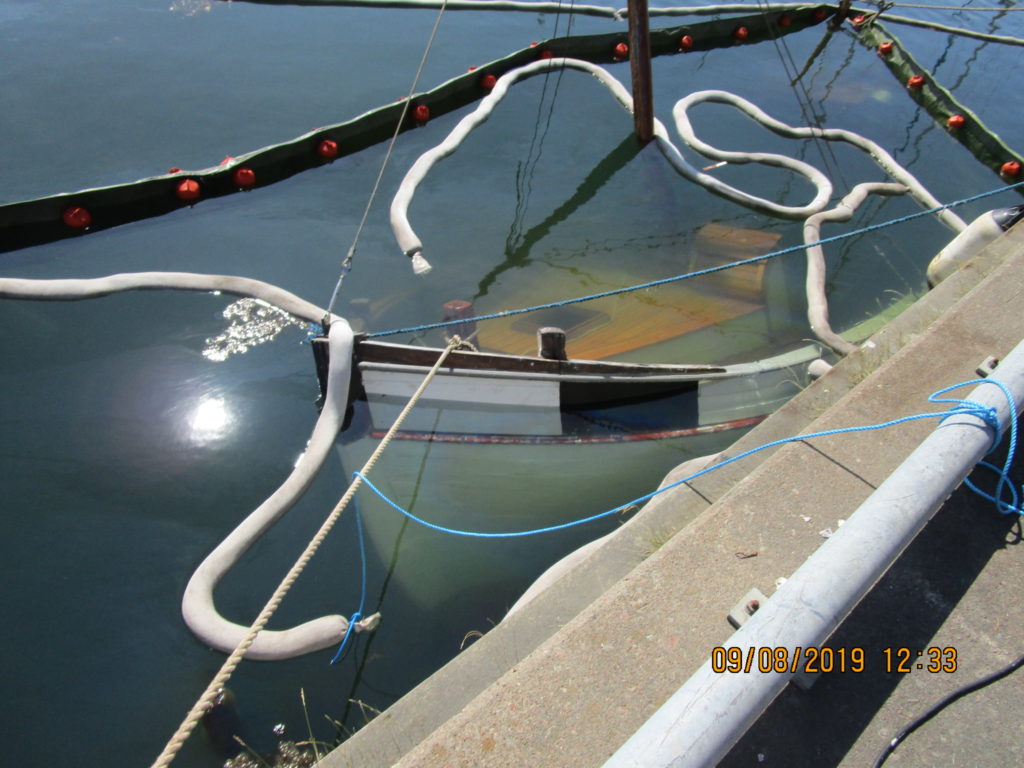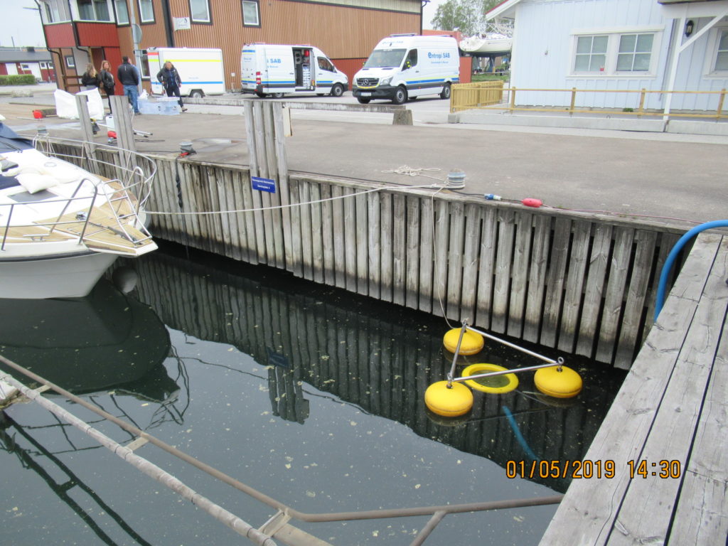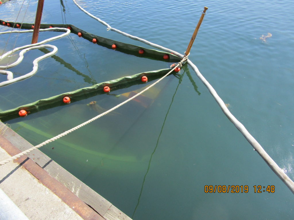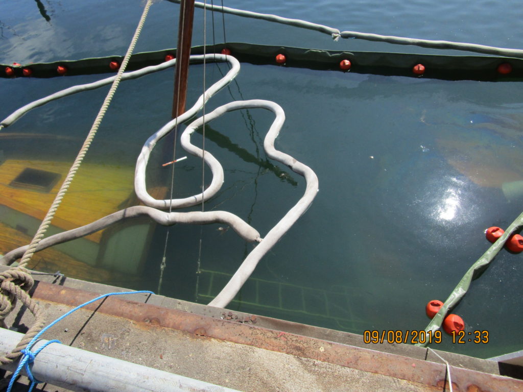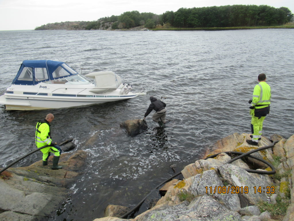 2019-08-09 Utläggning av länsor runt sjunken båt, Väröbacka