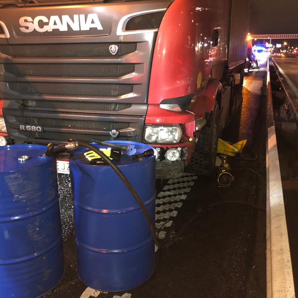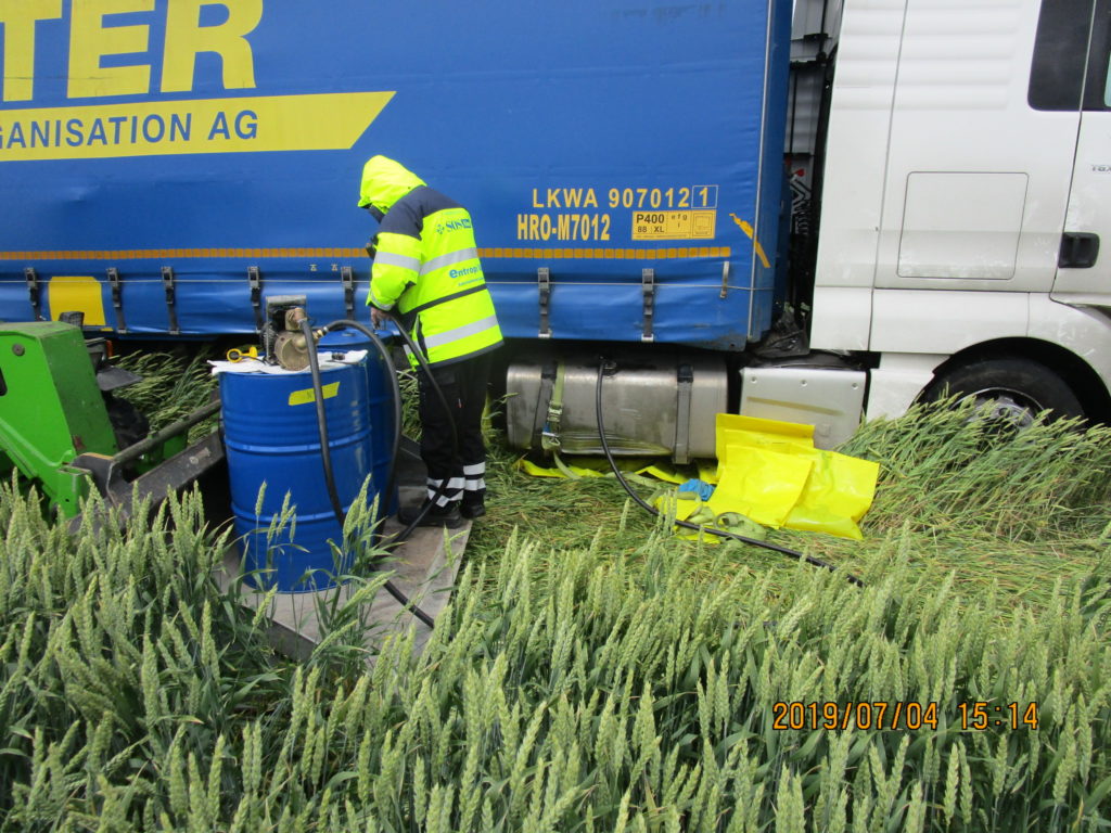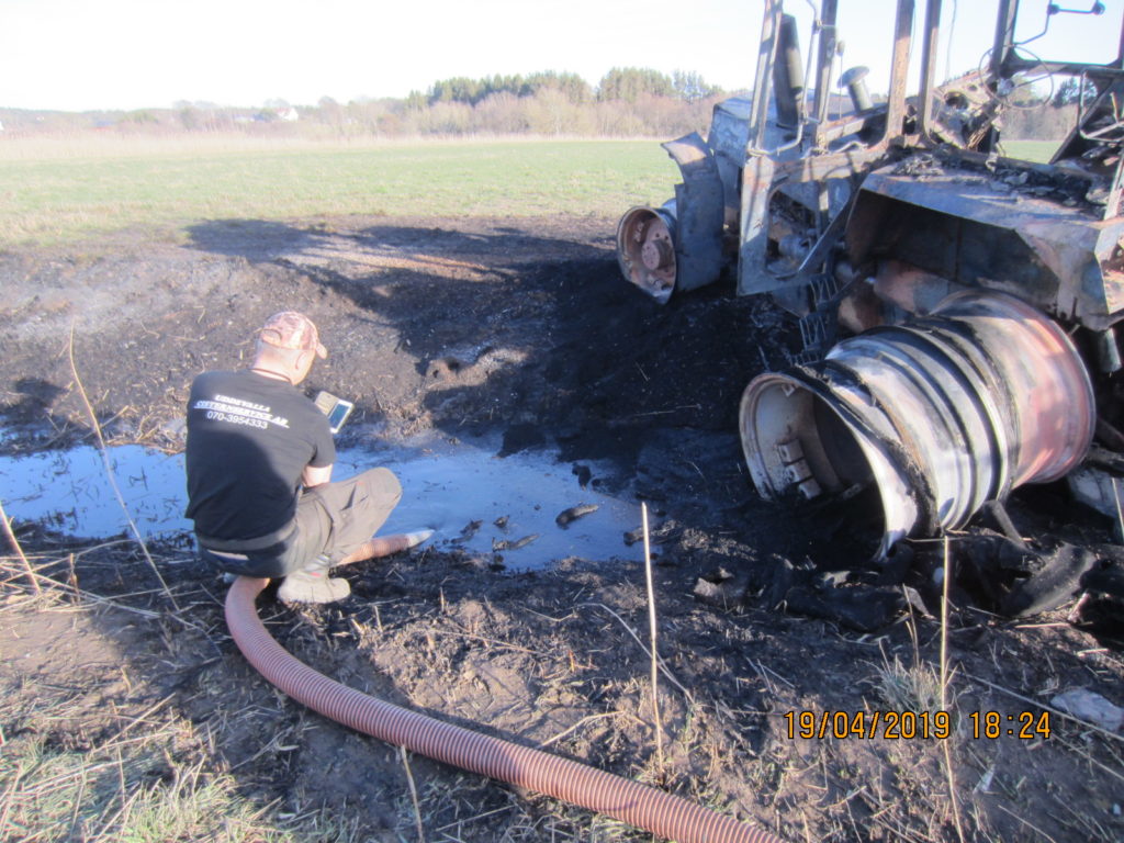 2019-07-04 Överpumpning av diesel vid lastbilsolycka, E6 Fjärås: