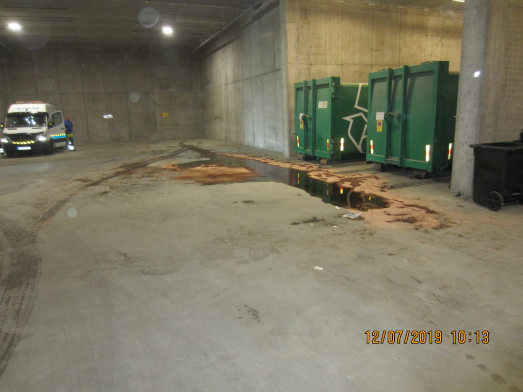 2019-05-08 Hydrauloljeläckage från sopbil, Göteborg: