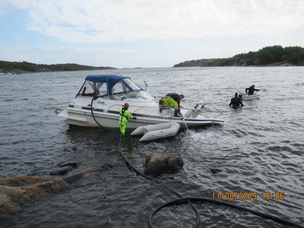2019-08-11 Länspumpning samt bärgning av motorbåt, Kungsbacka:
