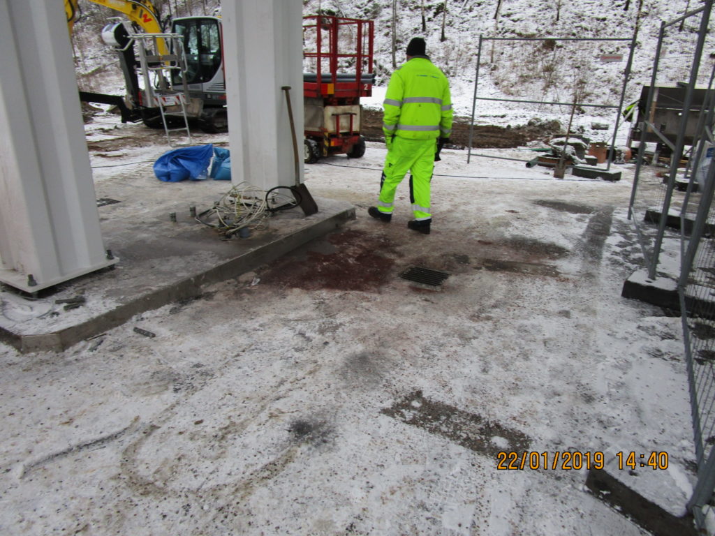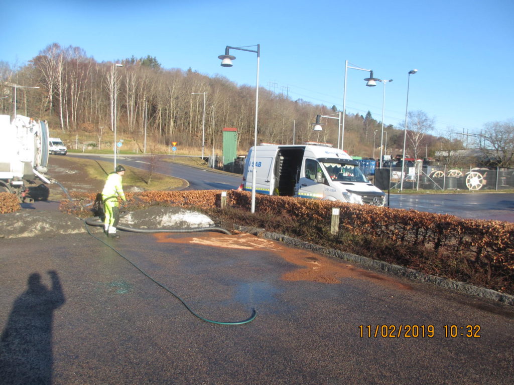 2019-02-11 Hydrauloljeläckage från grävmaskin, Kungälv: