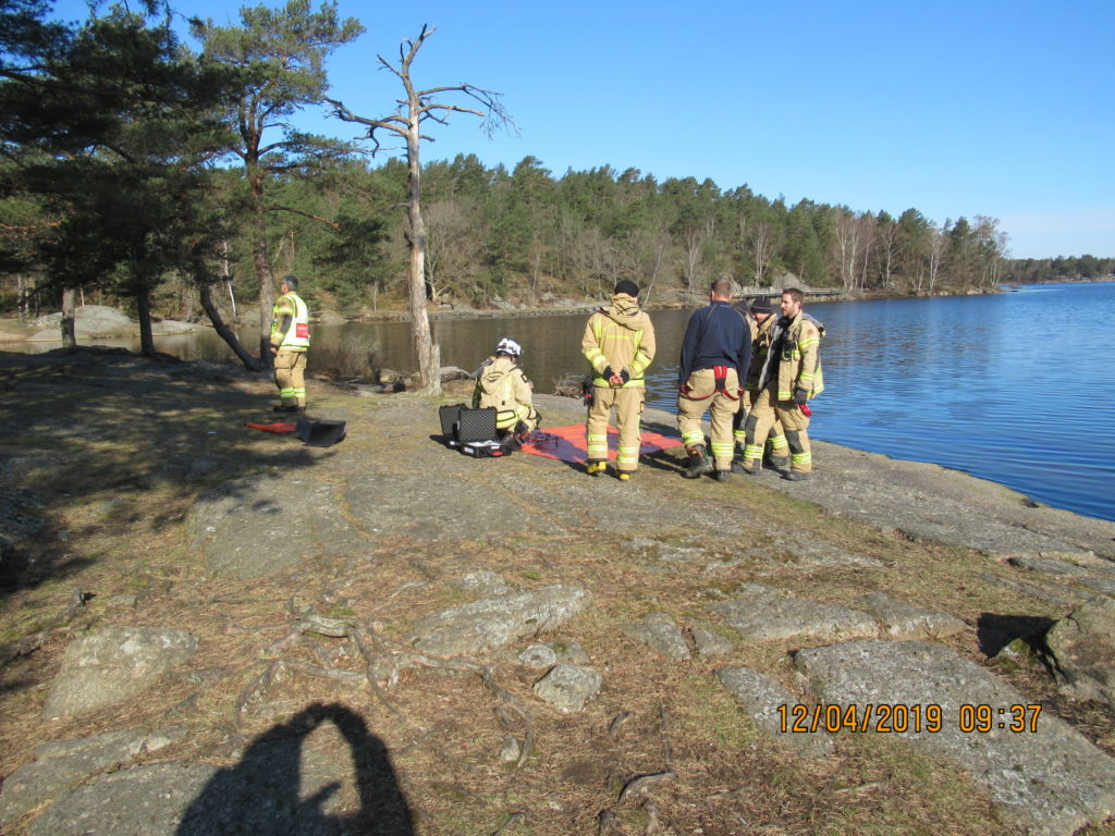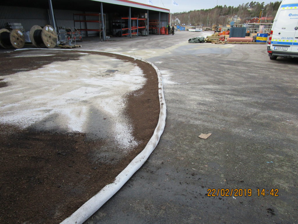 2019-03-11 Byte av absorberande brunnsfiltersäckar vid brandplats, Borås: