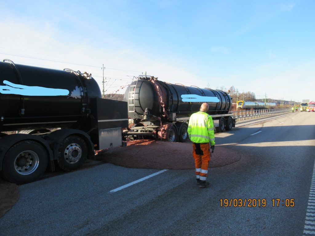 2019-03-19 Läckage av slaktavfall på E45:an, Nödinge: