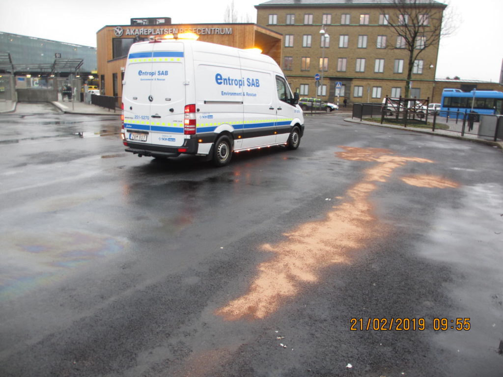 2019-02-06 Sanering efter oljeläckage från buss, Göteborg: