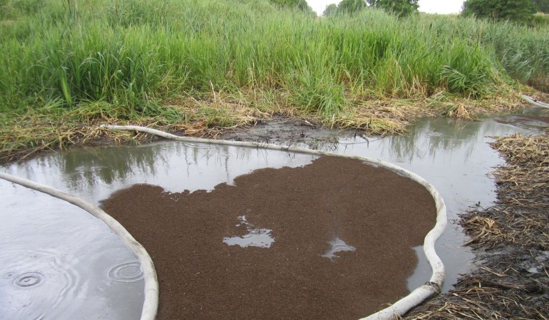 Vid sanering av förorenat vatten strör man Float Absorb över vattnet, eller använder det i länsar (se bild nedan). Sedan låter man det dra till sig oljan, för att sedan samla ihop det för deponering. Fördelen med Float Absorb vid vattensanering är att det inte sjunker. Det innebär att man inte behöver arbeta under tidspress, som man behöver göra med andra medel med begränsad flyttid.